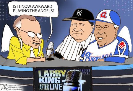 So, you heard the news. No, not that news. That’s new old news and a welcome relief from the oppressiveness of the bad news past four plus years. I speak of the other news that broke after the big old new news. Henry Aaron, one of the greatest baseball players of all-time passed away, followed the next day by Larry King, a groundbreaking, garrulous interviewer.